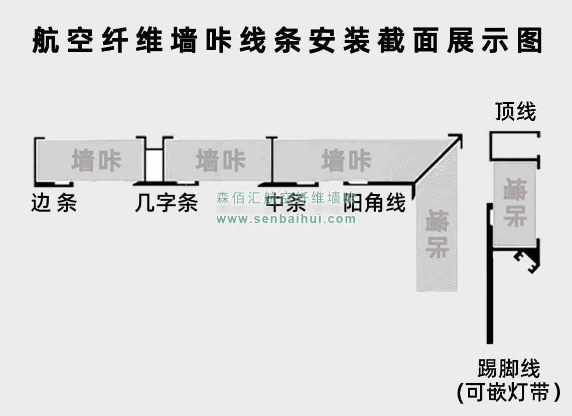 宝鸡航空纤维墙咔铝合金带灯中条(钛金氧化)